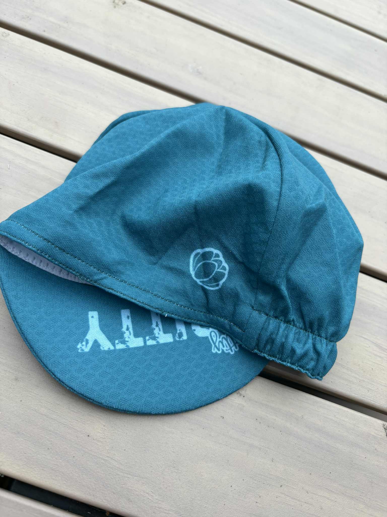 Teal has our new logo written under the peak and one on the right side.