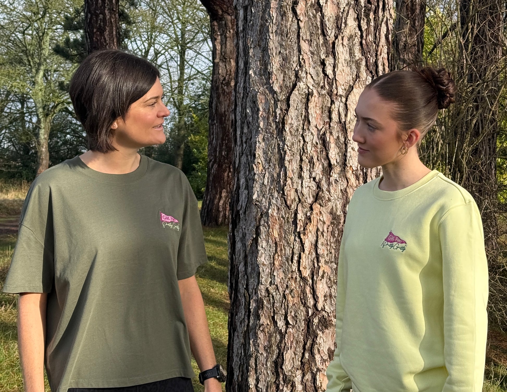 Lovely Spring Coloured Sweater (350 gsm) with our new 'GRL PWR I Pretty Gritty' unique embroidered logo.