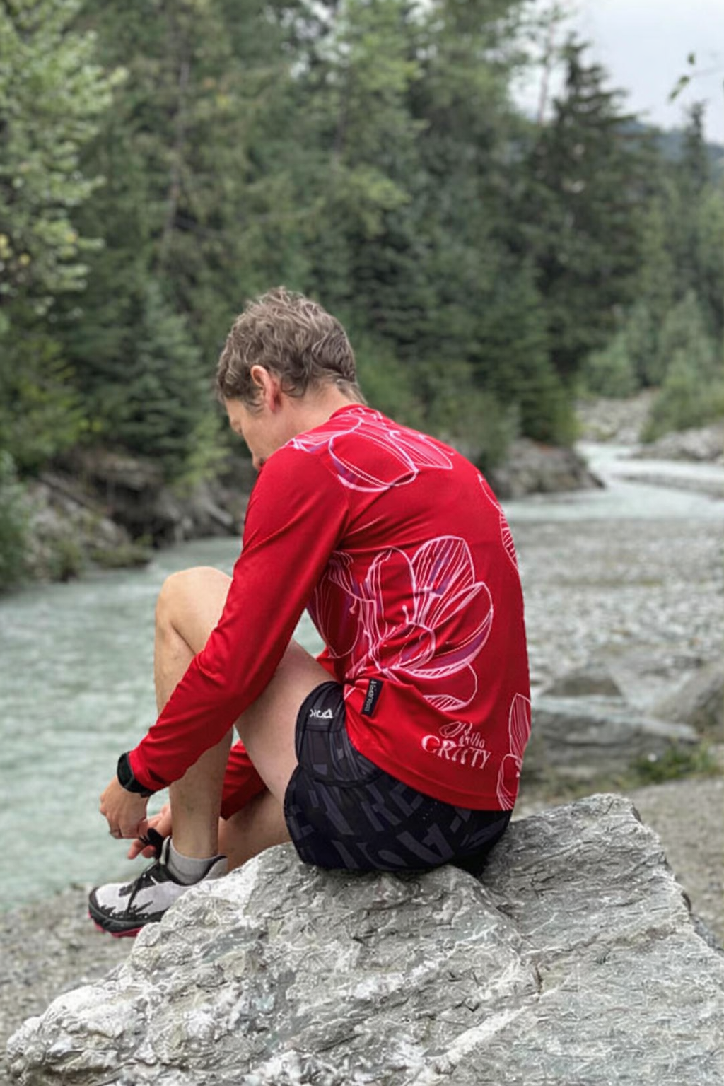 The red and pink version of our very popular 'Truly Teal ' long-sleeved running t-shirt. Lovely stand out colour but not over the top with our crocus design.